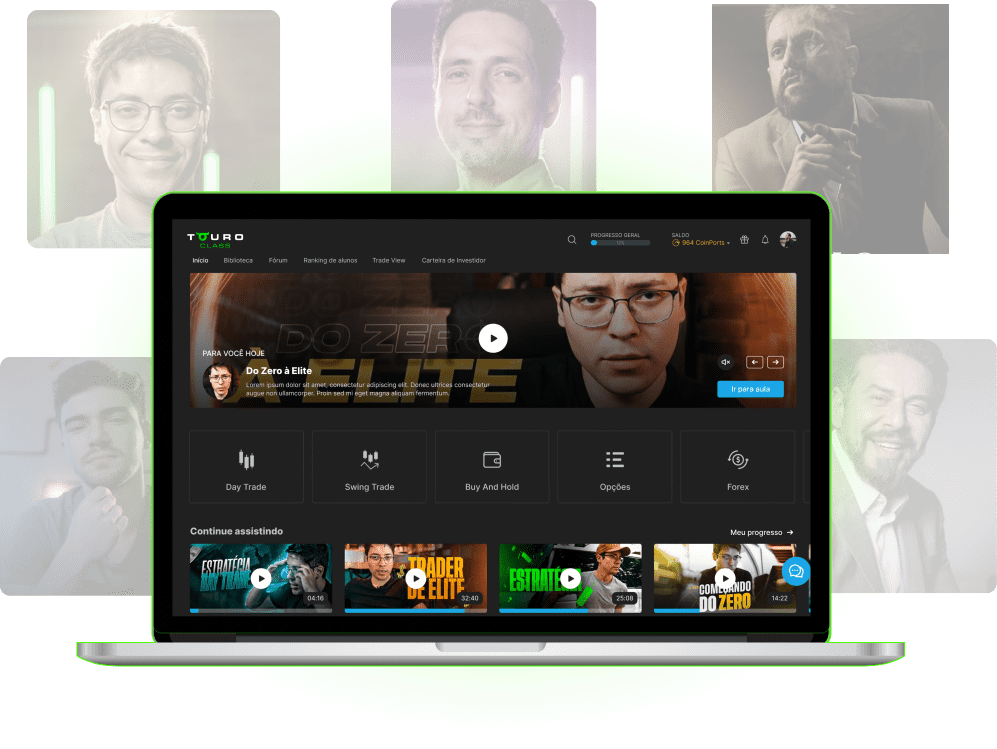 Qualquer assinante vai poder aprender DayTrade, Swing Trade, Buy and Hold, Forex, Mercado Americano, Opções e investimentos em Ações, Renda Fixa, Criptomoedas e setor Imobiliário, com os maiores nomes da educação financeira no Brasil.